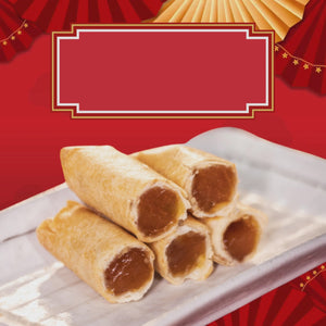 Sweet chewy nian gao wrapped in a crispy spring roll pastry — a festive favourite enjoyed year-round.