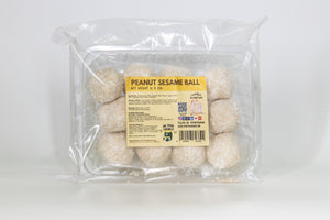 Our sesame balls are made with a sticky rice flour dough, filled with a crunchy peanut filling, rolled in sesame seeds, and fried until crispy on the outside, but still soft and chewy on the inside. Simply delicious!