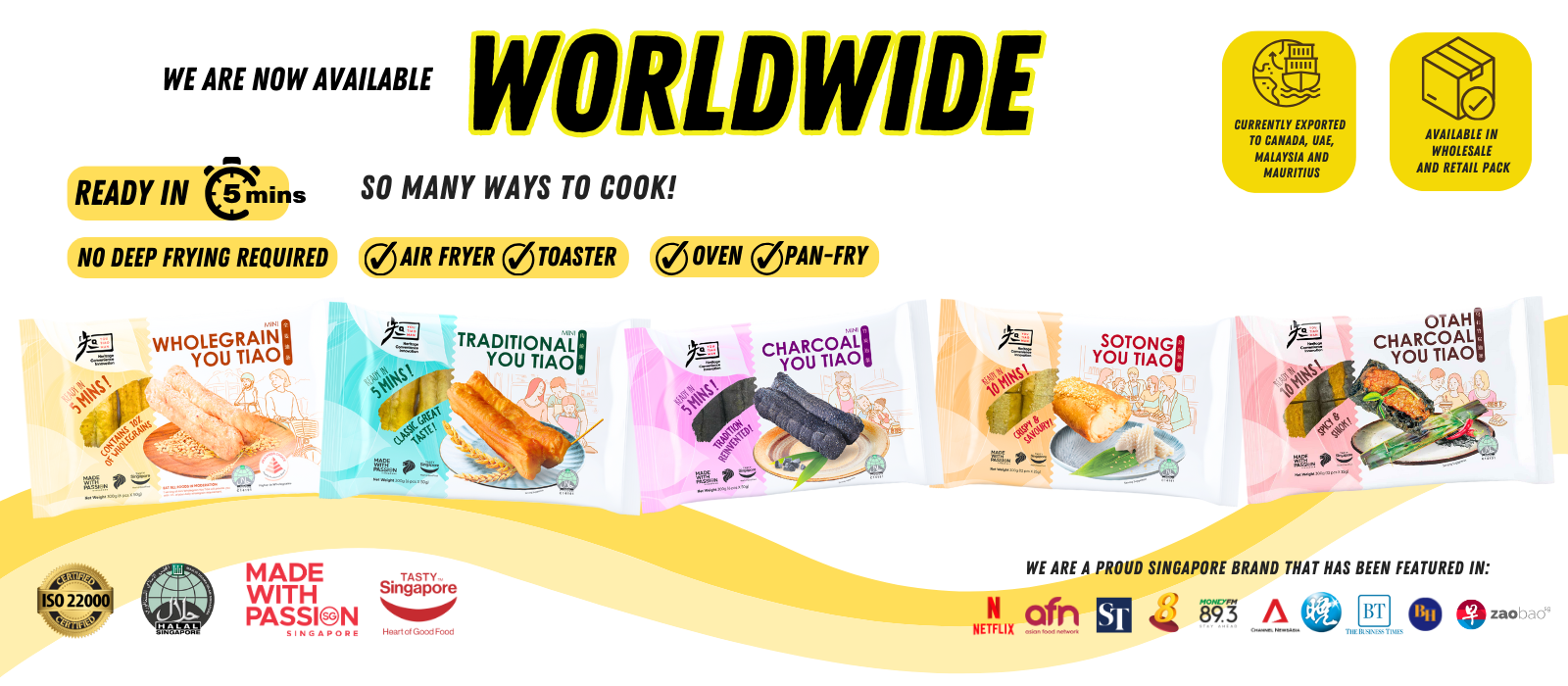 Awarded the Healthier Choice Symbol by Healh Promotion Board. Contains 10% of wholegrains for a healthier you! Enjoy this healthy You Tiao for breakfast, lunch or supper!